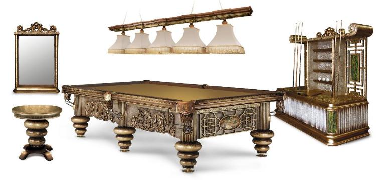 Бильярдная коллекция «Дракон Гранж»– пример высочайшего мастерства в технологии изготовления, тонкой стилистики, богатой гаммы изысканного цвета.