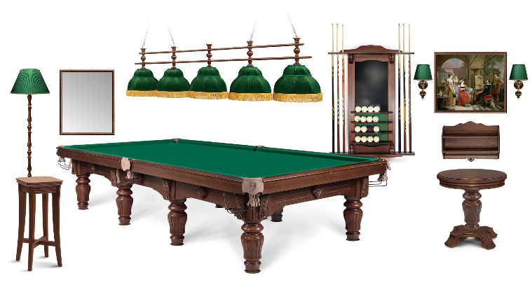 | Размер игрового поля 12-ти футового стола: 3,50х1,75 м. Бильярдная комната должна быть не меньше 7,00х5,25 м. | ||||||||
