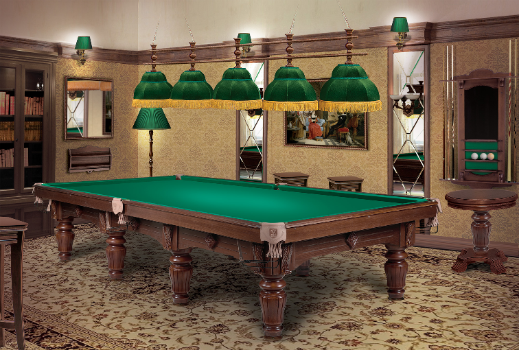 | Размер игрового поля 9-ти футового стола: 2,54х1,27 м. Бильярдная комната должна быть не меньше 6,04х4,77 м. | ||||||||