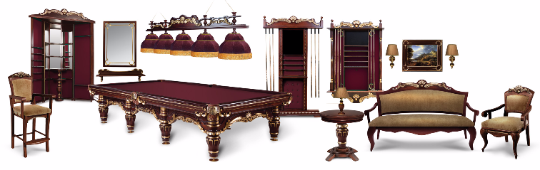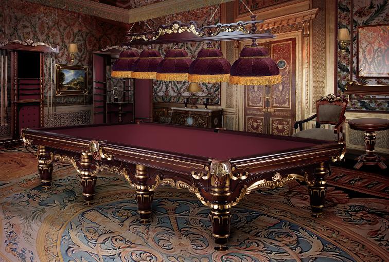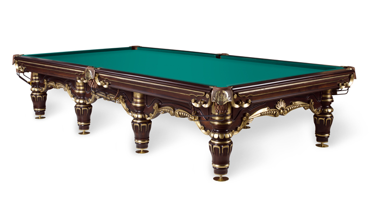 Ярким элементом декора коллекции «Император-Люкс», несомненно, стали резные узоры на лафете. Бильярдный стол изготавливается из надежных материалов высокого класса: качественного натурального дерева, плиты из природного сланца, бильгийского сукна и долговечной бортовой резины. С эстетической точки зрения настоящим шедевром «Император Люкс» делает особенная выкраска. Элементы стола декорируются поталью по старинной технологии золочения. Дополнительную роскошь коллекции дарит резьба ручной работы. Авторское патинирование и несколько тончащих слоев лака придают золоту «глубину», а всему изделию благородный вид антикварной вещи.