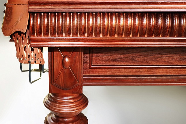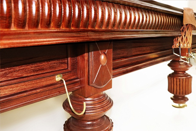 Бильярдный стол «Оксфорд» представляет собой совокупность элегантной отделки и профессионализма. Презентабельный бильярд с точеными ножками и пышным декором на бортах предназначен для поклонников классического стиля.
