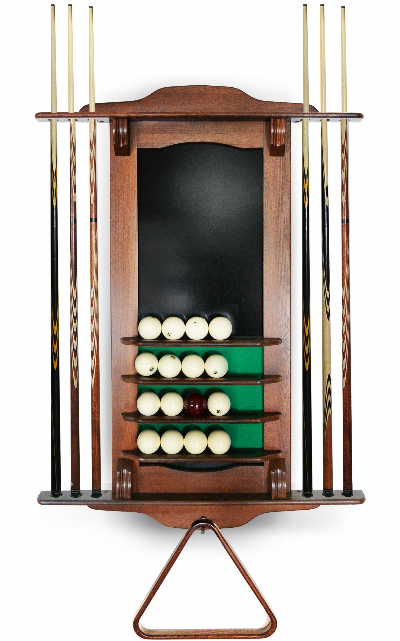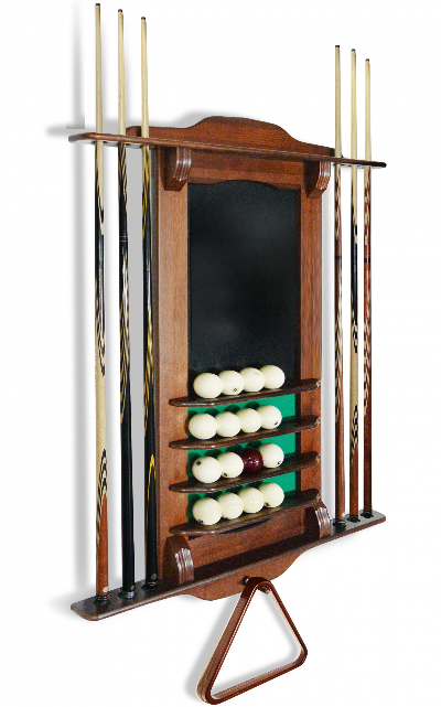 • Модель настенная, предназначена для 6 киев, позволяет разместить треугольник, мелки, а также бильярдные шары. Материал сосна или массив ясеня. Есть возможность выбрать цвет из палитры Фабрики «Старт»