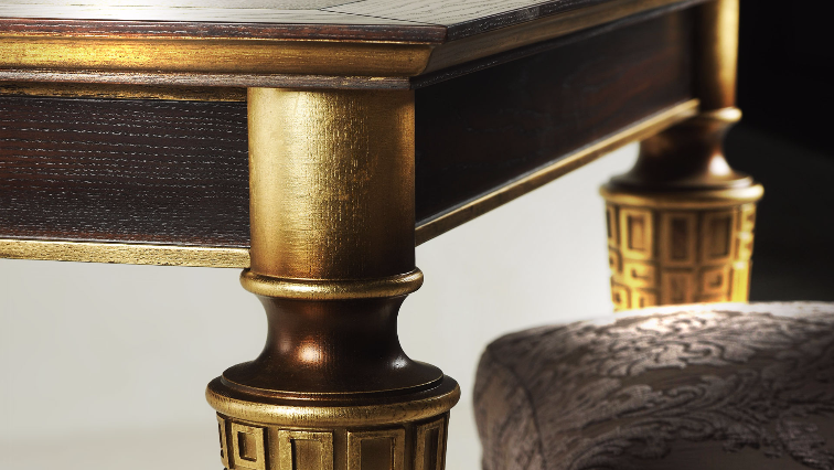 Стол «Модена» может стать выразительным дополнением не только столовой, но и гостиной или спальни. Серию «Модена» характеризует богатство отделки и выразительная форма ног, украшенная декоративной резьбой.