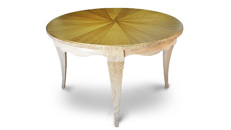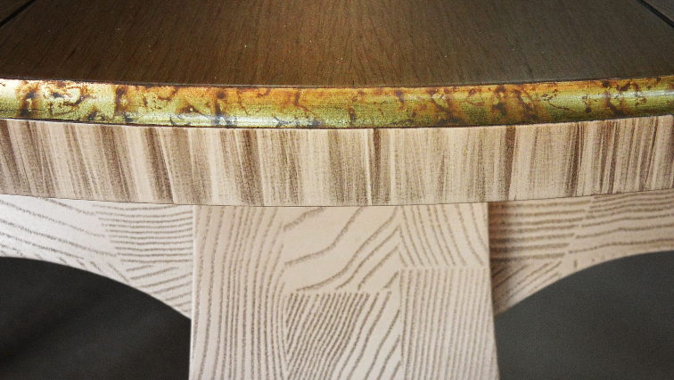 • Для создания индивидуального дизайна в столовой или гостиной комнатах необходимо учесть все нюансы. В большей степени это относится к выбору мебели, для которой не существует «мелочей». Особыми эстетическими свойствами обладают столы со  столешницей инкрустированной шпоном. Стильная и утонченная вещь выполнена из массива ясеня, декорирована золотой поталью. Ручная работа, выкраска в авторской  технике делает стол «Винтаж» настоящей «изюминкой» в интерьере.