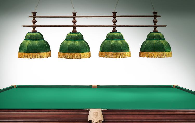 • Светильники Аристократ с 4 плафонами подходят для освещения бильярдных столов 9 футов и 10 футов.
