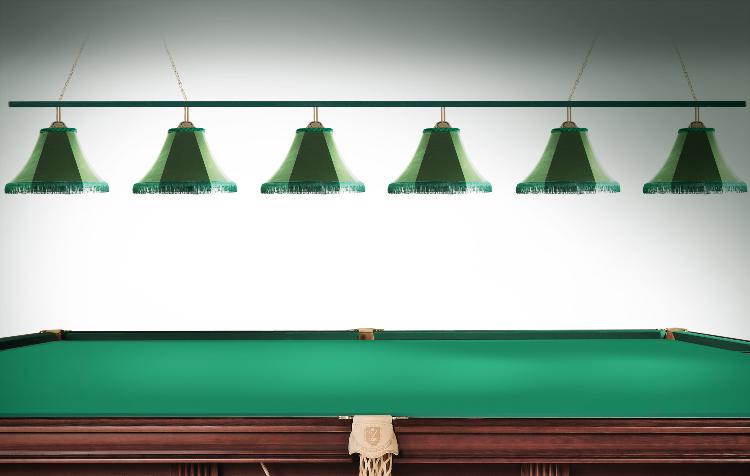 • Лампы для бильярдных столов. Зеленая металлическая штанга. Плафоны - бархат. Поставляются в комплектации 6 плафонов. Светильники предназначены для освещения бильярдных столов 11 футов и 12 футов.
