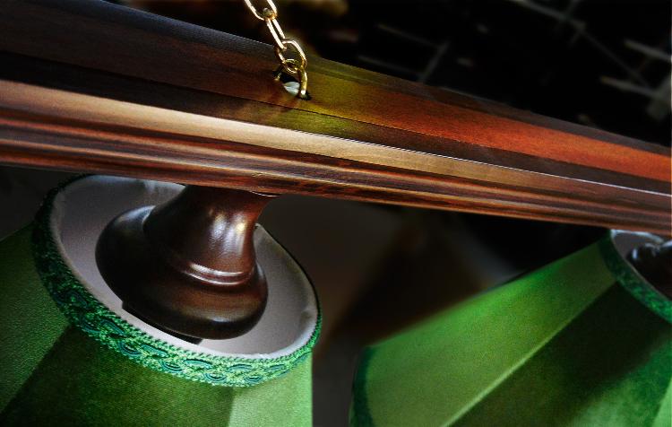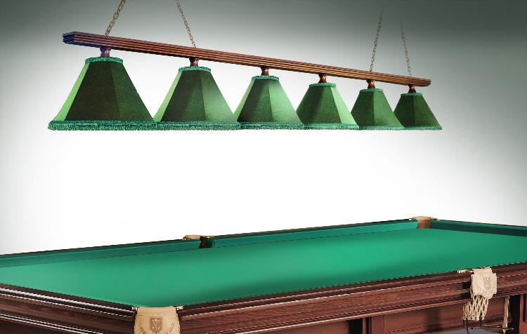 • Лампы для бильярдных столов. Штанга - сосна. Плафоны - бархат. Поставляются в комлектации 6 плафонов. Светильники предназначены для освещения 11 футовых и 12 футовых бильярдных столов.
