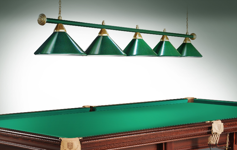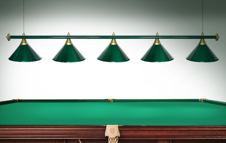 Светильники Startbilliards производства ФС «Горизонт» с 5-ю плафонами комплектуются к столам 10 футов.