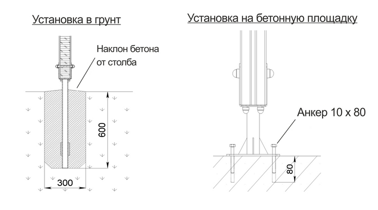 Установка конструкции допускается двумя способами: