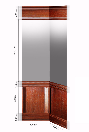 Угловой узел «Стандарт» внутренний применим к углам оформляемого помещения. Является необходимым элементом для корректного совмещения панелей в углах комнат.