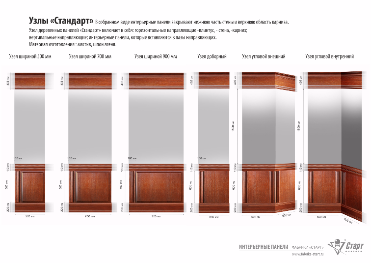 Деревянные панели для внутренней отделки стен класса «Стандарт» шириной основных узлов 900 мм.
