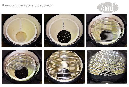 Компактная модель Start Grill 12 одновременно сочетает в себе функции гриля, барбекю, мангала, коптильни, духовки, печи для пиццы и тандыра. Гриль выполнен из экологически чистой толстостенной керамики и очень прост в использовании, потребуется совсем немного времени, чтобы подготовить его к работе и начать готовить настоящие кулинарные шедевры.